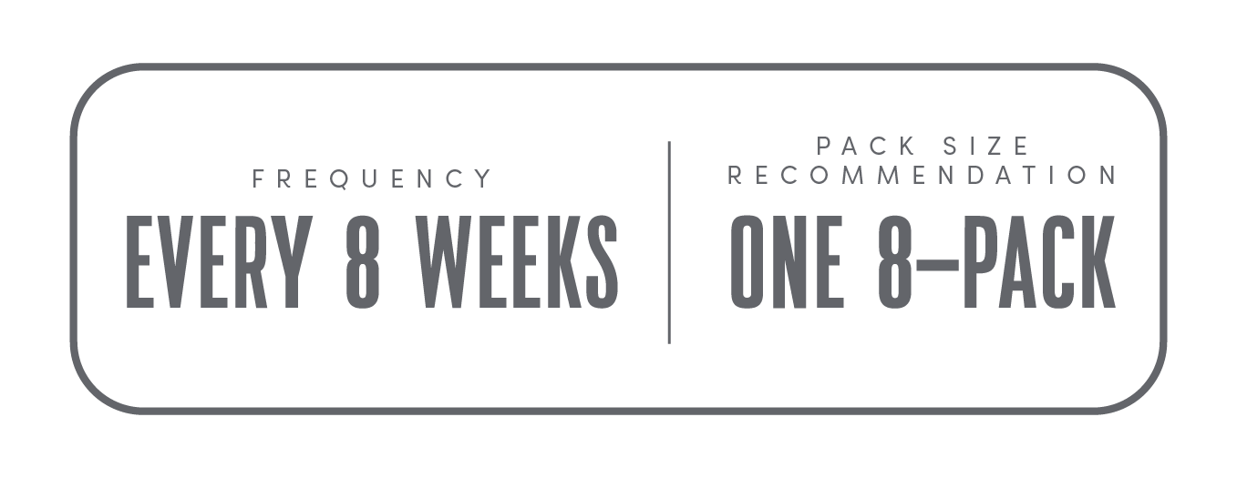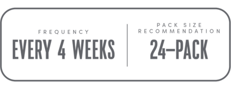Choose your pack size and frequency. We offer 8-pack, 12-pack, or 24-pack options and convenient scheduling. Not sure which frequency is right for you? Check out our guide below.